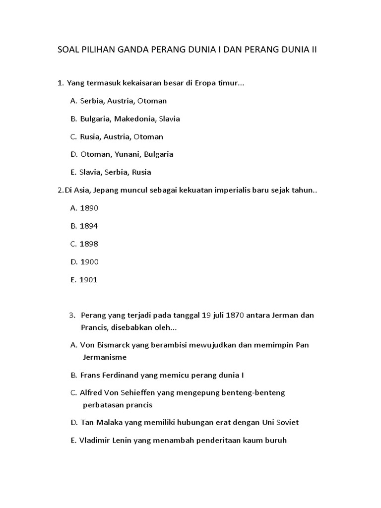Soal Pilihan Ganda Perang Dunia I Dan Perang Dunia Docx