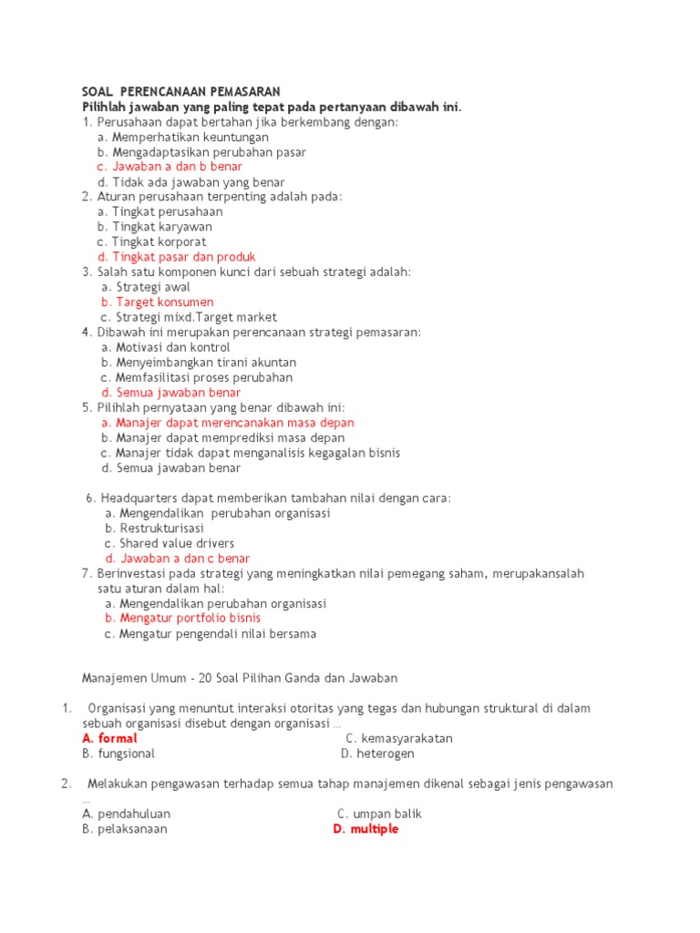 Kumpulan Soal dan Jawaban Manajemen Pemasaran Bagian III Soal dan Jawaban - Teknologi Komunikasi Soal dan Jawaban Enterprise Risk Management. Pengertian Bisnis Dan Manajemen Bisnis adalah suatu kegiatan usaha individu yang terorganisasi untuk menghasilkan dan menjual barang dan jasa guna mendapatkan keuntungan dalam memenuhi kebutuhan masyarakat. Contoh Pertanyaan Untuk Manajemen Pemasaran Nama.